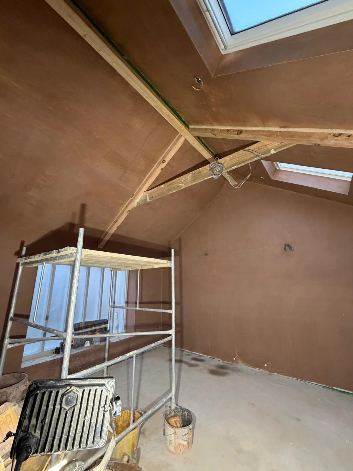 The newly plastered rooms already highlight the scale of the transformation, turning a tired property into a fresh, modern living space.